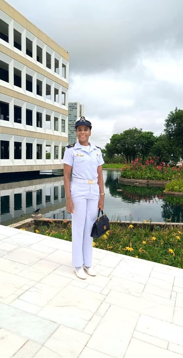 Eletricista marítima com mais de 10 anos de experiência, formada pela ETAM (Escola Técnica do Arsenal de Marinha), formada em Logística, MBA em ESG( Ambiental, Social e Governança), formanda em Relações Internacionais, curso de extensão em Estratégia Marítima e Membro da Diretoria do grupo Mulheres Aquaviárias.