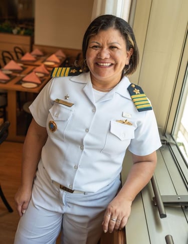 Fiz parte da primeira turma de mulheres Oficiais na Marinha Mercante, recebi nomeação como primeira mulher na função de Imediato no Brasil e em 2009 fui a primeira mulher a concluir um curso de CCB na Marinha Mercante Brasileira. Enfrentei desafios, superei limites e me tornei a primeira mulher a comandar um navio na Marinha Mercante Brasileira. Em 2015, fui a primeira Comandante Mercante a concluir Curso de Altos Estudos e Estratégia - CAEPE/ESG, Bacharel em Ciências Contábeis pela UFPA e concluiu em 2025 - Escola Cristã de Maturidade - Atos